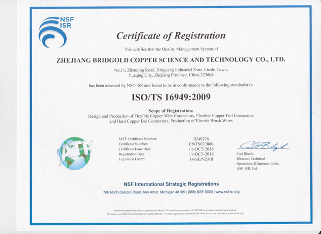 - 金橋銅業(yè)-銅箔軟連接證書